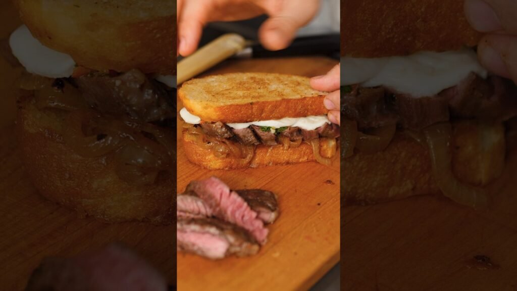 Сегодня идеальный стейк-сэндвич с карамелизированным луком на хрустящие жаренном хлебе Рецепт в комментариях …