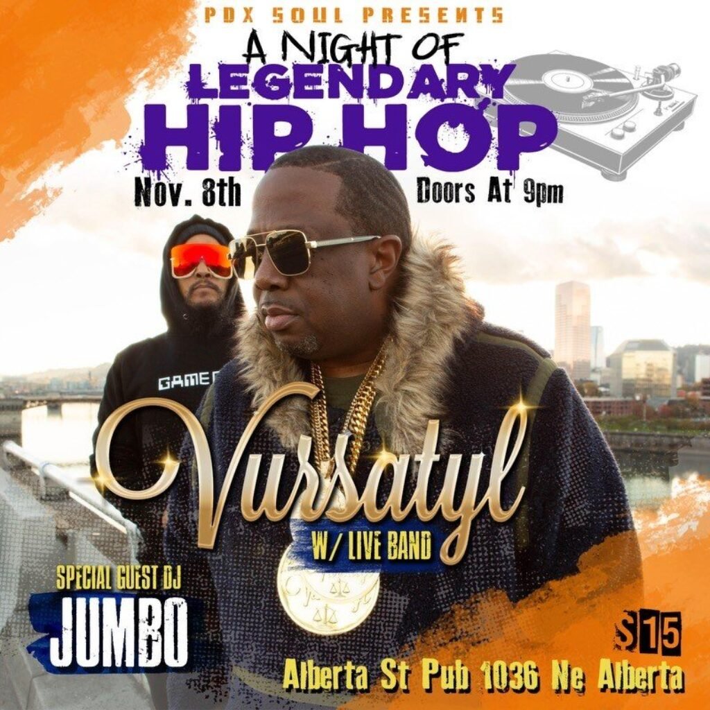 A Night of Legendary Hip Hop Vursatyl with Live Band with Special Guest DJ Jumbo. Friday, November 8, 2024; 9:30 PM 11:55 PM 21:30 23:55. Alberta …