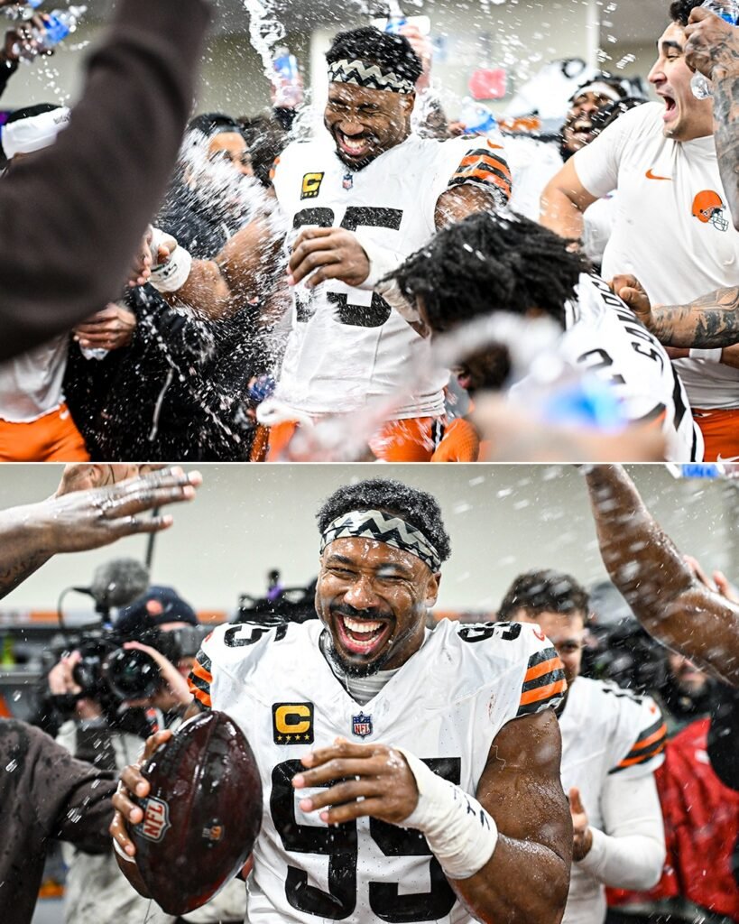 Yahoo Sports (@yahoosports). A WELL-DESERVED CELEBRATION SHOWER FOR THE NFL'S NEW SINGLE-SEASON SACK LEADER (via Browns). Source link