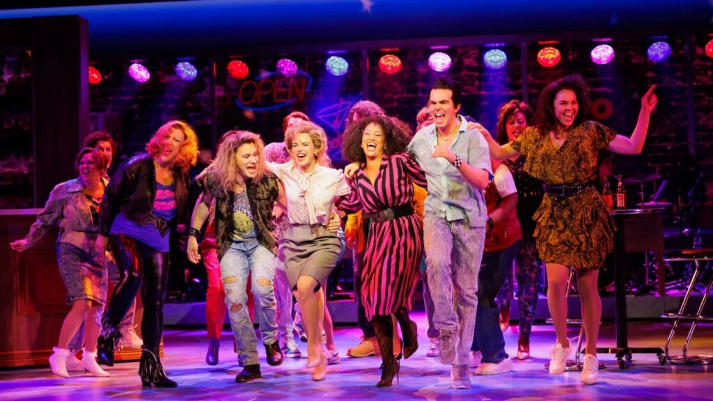 The musical keeps the aforementioned plot, but instead of just Tess and Jack at the heart of the story, a thrilling group of her female colleagues shows up for the team effort. The audience gets the pleasure of standout performances by Ashley Blanchet — who steps in for the role of Cyn, Tess’s best friend — along with lovable moments by Amy Hillner Larsen, Sydni Moon, and Jacqueline B. Arnold. The film’s scene where Tess and Cyn go through Katherine’s wardrobe transforms into a fantastic runway affair where Tess and her friends catwalk in full Eighties flair — donning sparkling designer gowns and belting out Lauper’s “Notice the Woman.”