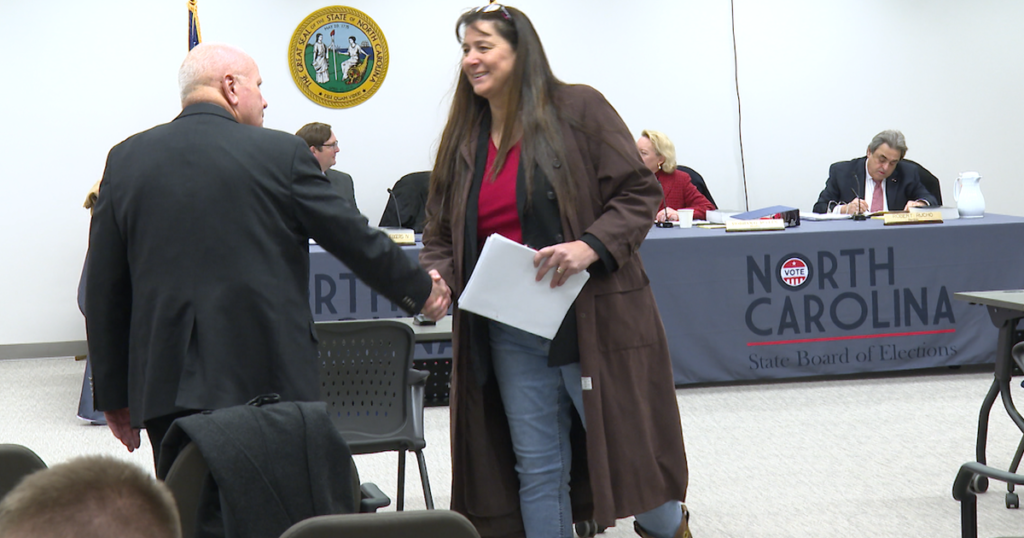During Wednesday’s hearing she again declined to provide proof the she’s a North Carolina resident, saying she only learned of this challenge a week ago when WRAL called her to ask about it, and that she hasn’t had enough time to hire a lawyer. A state board staffer said he first emailed Dupre two weeks ago, and followed up with multiple other emails and phone calls, but never received an answer. Dupre indicated she missed the earlier attempts to contact her.