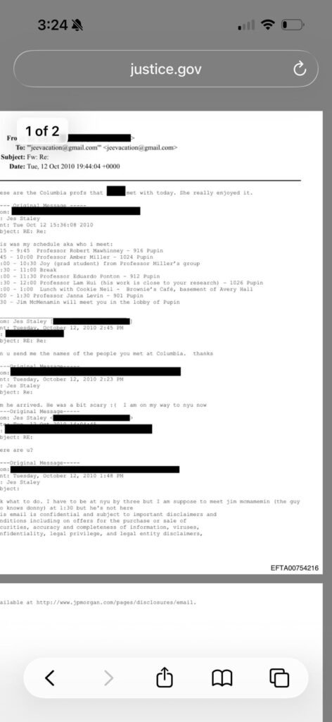 Does the blanked out name imply the person meeting with Columbia professors was a victim, and these people should be looked at?