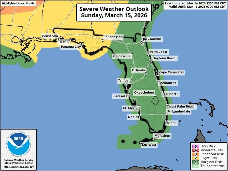 Florida. Tomorrow things go downhill. Random storms across the whole state, peninsula especially, at first. Then overnight into Monday AM could be …