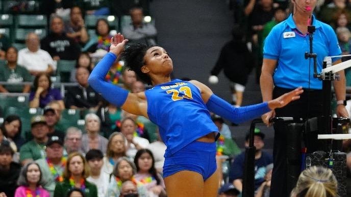 UC Riverside’s first four points of set three came on UCF errors, two at the net and two at the service line. The middle blocker duo of Hooks and Hendrix, already having made its mark, combined for four blocks. Nikki Hughes contributed one late in the set.