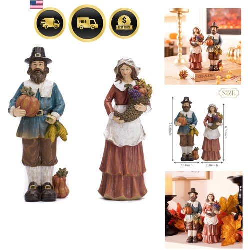 Fall Decorations for Home Pilgrim Figurines Thanksgiving Table Decor Set of 2 7.