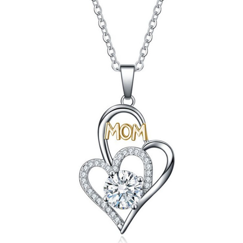 Women Silver Love Heart MOM Cubic Zirconia Pendant Necklace 18″ Gift PE42