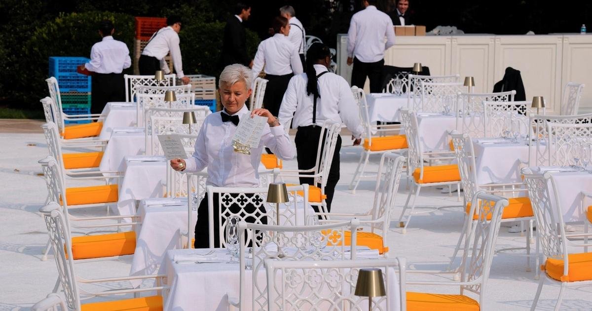 There’s new patio# furniture and umbrellas with bright yellow## accents resembling President Trump’s# club in Florida, Mar-a-Lago.