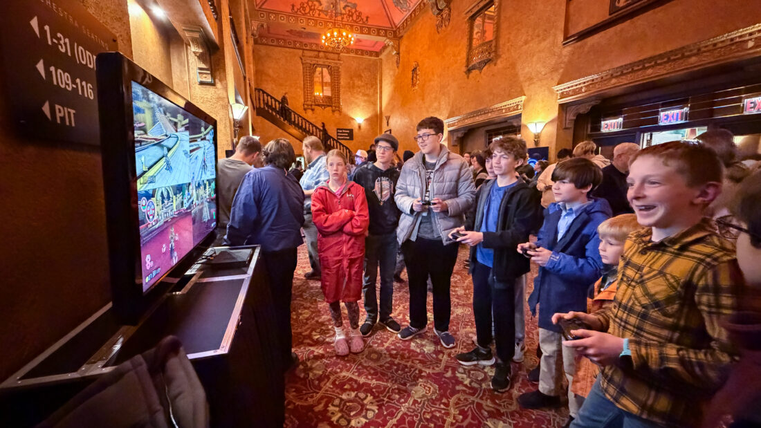 Young gaming fans play Mariokart in the lobby of the Community Arts Center during the intermission as the Williamsport Symphony Orchestra and the Youth Orchestra perform music from the video games during a performance at the Community Arts Center in Williamsport. The evening’s performance of “Video Games in Concert” was held and highlighted music from popular video games including Tomb Raider, Metal Gear Solid, Halo, Skyrim and more.