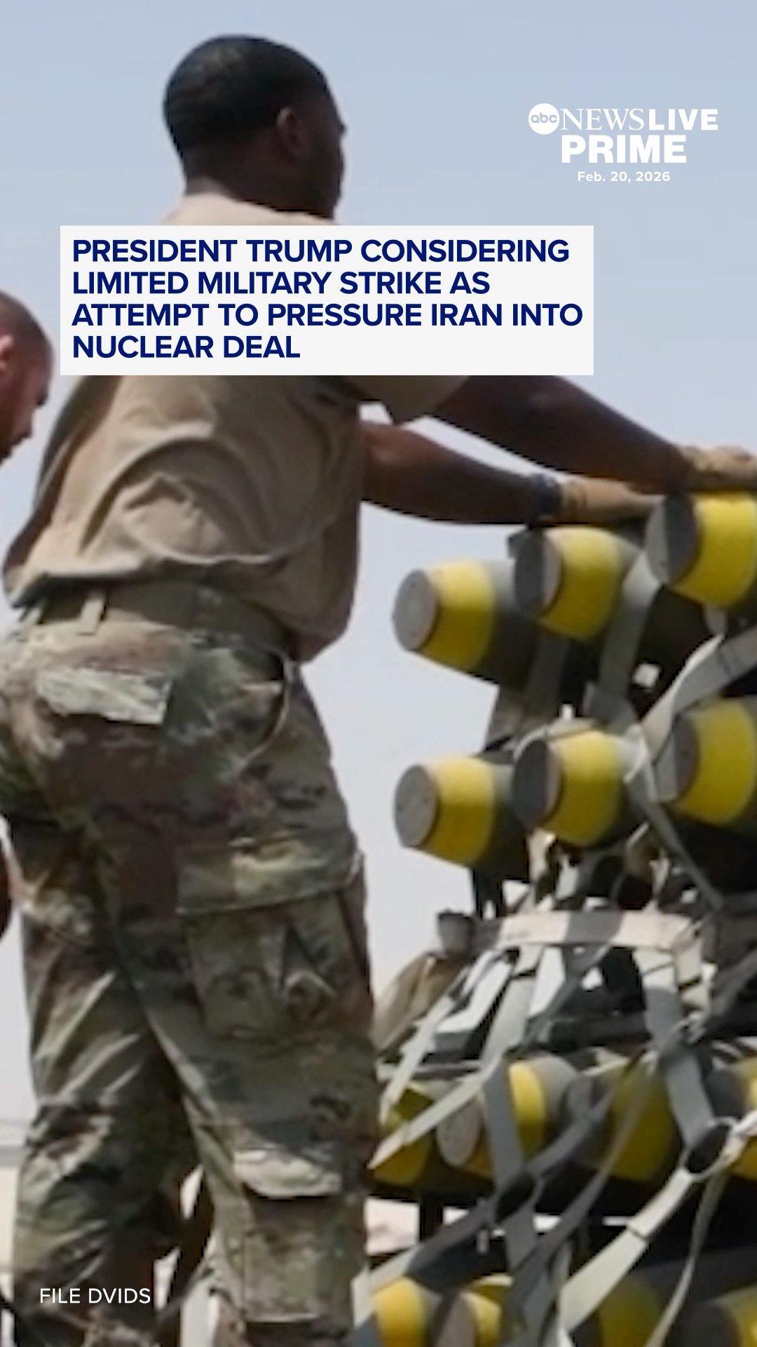 President Trump is considering a range of options for military strikes against Iran, including a possible limited strike aimed at enhancing the United States’ negotiating position, a person familiar with the planning told ABC News. ABC News’ Ian Pannell has the latest. https://abcnewslive.visitlink.me/n4Cl75