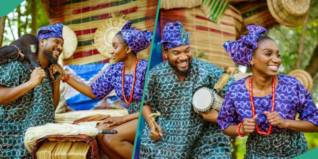 The wife of the actor Tiwi did not leaving any stone unturned as she came prepared to wow netizens in her traditional attire. Her outfit matched that of her husband. She wore a brown dress, a brown ‘gele’, red beads, and her smile made her glow effortlessly.
