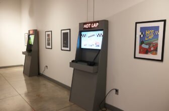 A photograph from inside the 2025 Arkansas Tech University senior exhibition for game and interactive media design students. A senior exhibition featuring five video games ...
