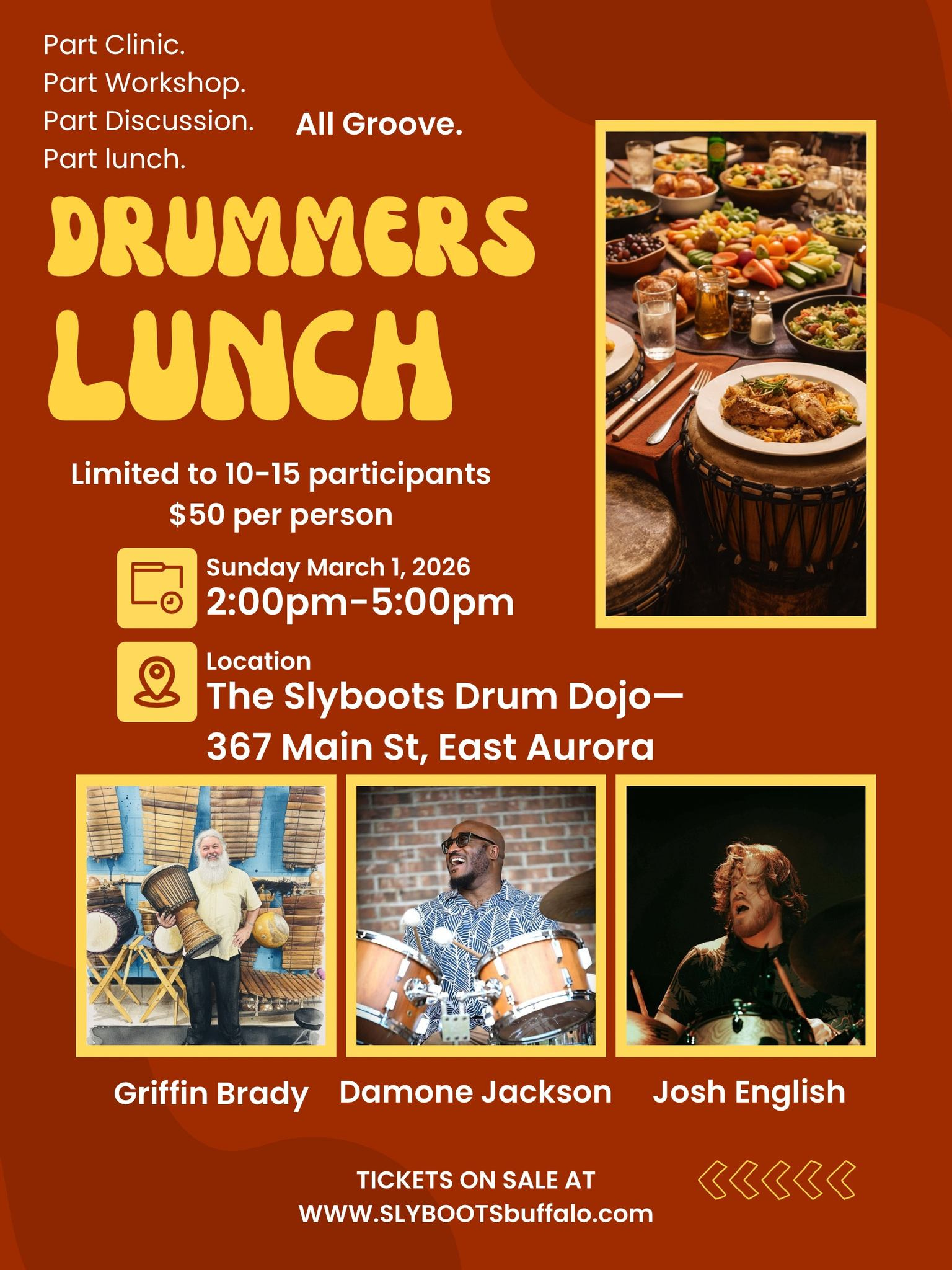 Sunday, March 1, 2-5 pm at Slyboots Drum Dojo, East Aurora, NY. $50. Get tickets here.